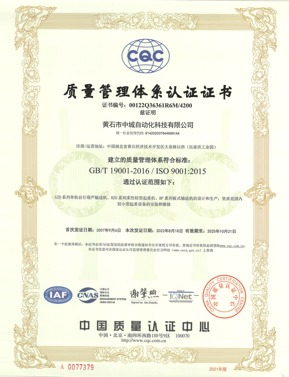 質(zhì)量管理體系認(rèn)證證書