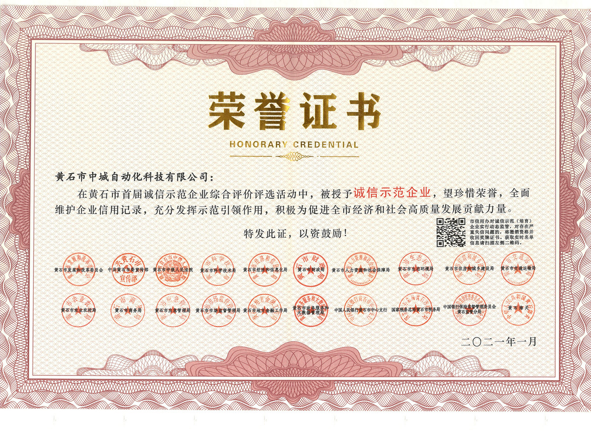 2021誠信榮譽(yù)證書